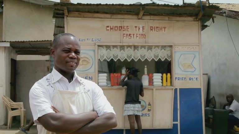 A self-employment group member discusses how the self-reliance group helped him to decide to expand his fast food business.
