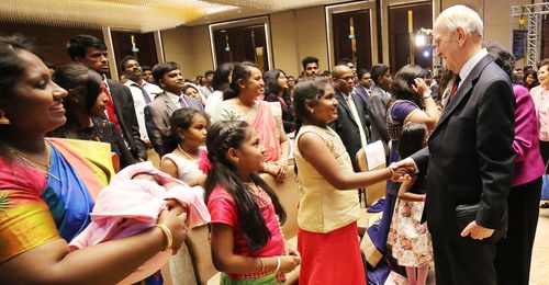 After a devotional in Bangkok, Thailand, President Nelson, Sister Nelson, Sister Holland, and Elder Holland greet those who came to listen. Photo by Jeffrey D. Allred, Deseret News.